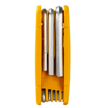 Trwały i zarazem kompaktowy zestaw ośmiu kluczy imbusowych w rozmiarze od 1,5 do 8 mm. Dzięki składnej konstrukcji świetnie sprawdzi się zarówno w trasie jak i domowym warsztacie rowerowym.